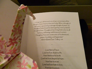 Mr. Crane and I sat reading the program. To my delight and surprise there were peace prayers from most every religion inside the little book. Hebrew peace prayers, Hindu peace prayers, Buddhist peace prayers, Shinto, Christian, Muslim, Indian, Native American and everything in between, including a portion of one of Abdu'l-Baha's addresses at the 1911 Paris Peace Talks. I knew you'd want to see.